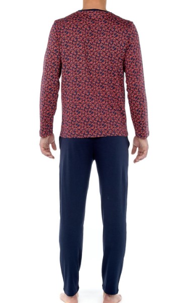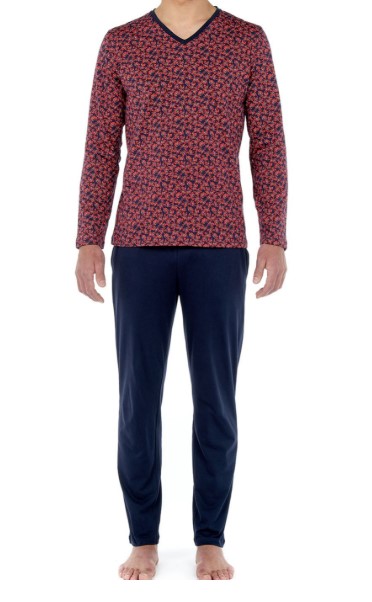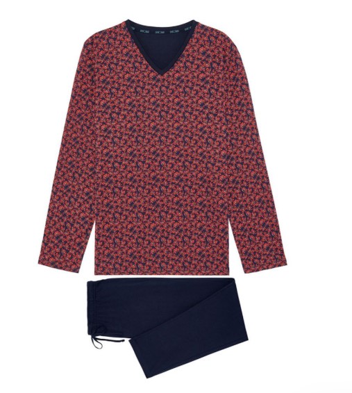 The LOE long pajamas are pajamas for men with a bright and chic print, in navy blue, red and white colors. In 100% cotton, this two-piece is as comfortable to wear as it is easy to maintain.