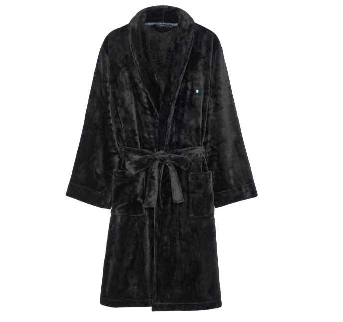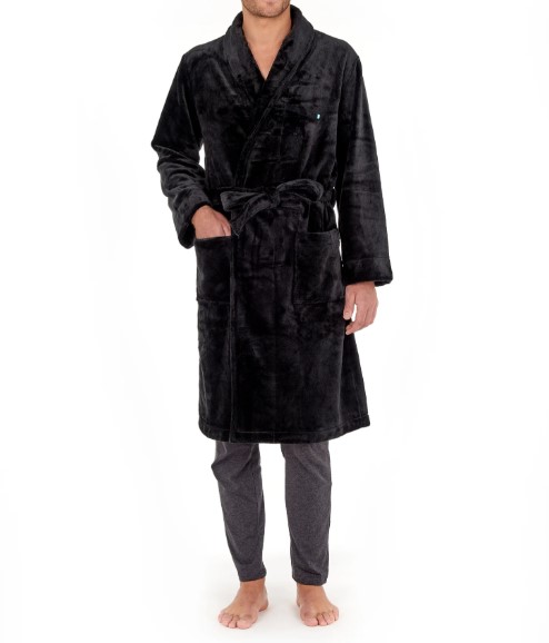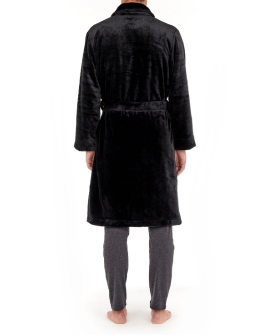 The NICE robe is a long, straight cut robe in black. Particularly comfortable and soft, worn next to the skin, over underwear, pajamas or indoor clothing, this robe has a glamorous look, the depth of the black color is reinforced by the play of light allowed by the surface of the polar material of which it is composed. This very easy-care robe has been specially designed to increase the well-being of the wearer: the thickness of the fleece material, the enveloping sensation, its softness allow absolute relaxation!