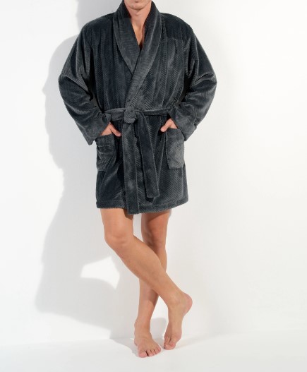 The EVEREST short kimono is a short bathrobe for men with a herringbone pattern. This short bathrobe for men is very fluffy, warm and soft and can be worn directly on the skin over HOM underwear, pyjamas or homewear for men. It offers a glamorous style that is essential for chilling out in the warmth. This easy-care bathrobe has been specially designed to enhance men\'s comfort and relaxation, whatever their body shape: the thick fleece material and soft, enveloping feel offer the opportunity to relax instantly at the end of the day or at the weekend.